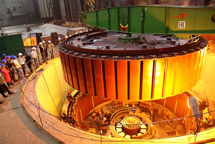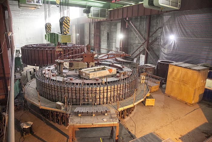 Installation of the stator and the rotor of the generator proceeded in two phases. Initially installation of the stator was erected followed up by high voltage tests of its winding to check out the quality of installation. Following that, the rotor was successfully placed into the crater which took two hours.